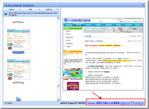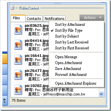 我不得不說,ClearContext在這點真是設計得非常棒。因為現在很多文件、報告,都是用附加檔案寄來寄去,有時真正需要的,是那個檔案而不是那一封mail 。