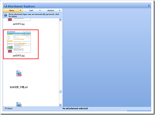其中我覺得最妙的是,最下方的【Open Attachment Expolrer】 選項。點選後就會變成這樣