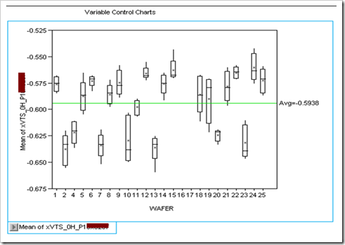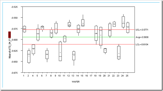 用這個的好處是,很快。假設真的是製程上出問題的話,某幾片應該會出現類似GROUP的情形。此外,它的X座標是按照我資料的排列順序下去做圖,如果有兩批以上的資料要比較,只要在輸入前處理的時候,把資料通通放進去,就不用擔心會搞混。
