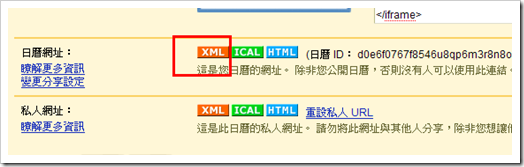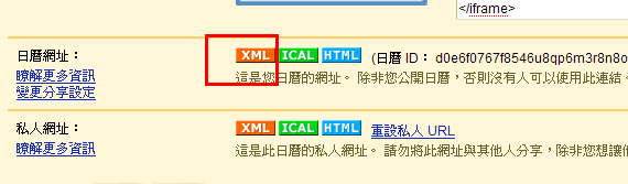 首先要先到Google Calander 去取得XML的LINK。