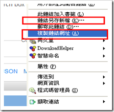 在Get as KML,有兩種作法,【複製鏈結網址】 與【鏈結另存新檔】。先看複製鏈結。