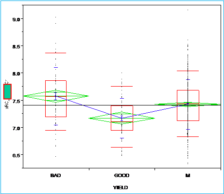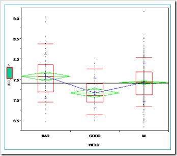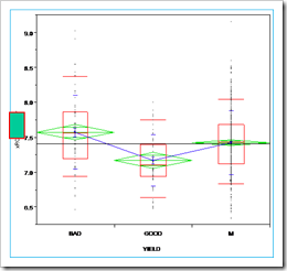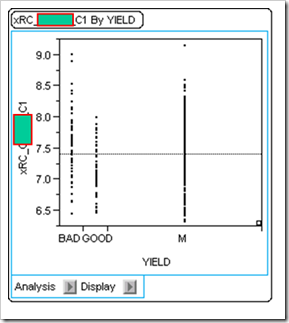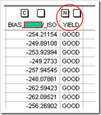 因為要做X-Y的關係圖,所以要在工作表標明yield 的好壞,要標示這些良率好壞,用Excel會比較快。這裡把YIELD分成GOOD、BAD、M(好、壞、中等),它會出現N,代表它是名詞,不可計算。同時,畫圖時,YIELD一定要放在X。