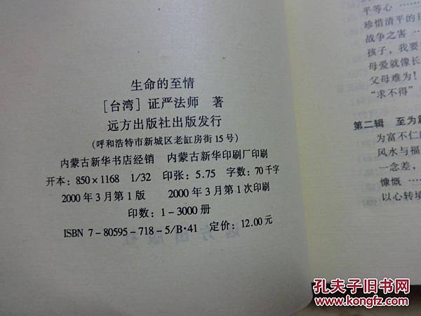 由於三民書局也有賣簡體書,經過查詢,這本<生命的至情>, 目前沒有簡體版。遠方出版社的名義很常被中國的盜版商使用,該書有提供 ISBN 9787805957185,